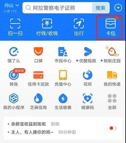 在頁面右上角點擊“卡包”按鈕