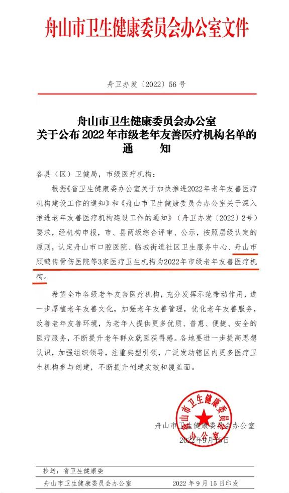 近日,舟山市衛(wèi)健委公布了今年市級(jí)老年友善醫(yī)療機(jī)構(gòu)新入名單,其中我院赫然在列。