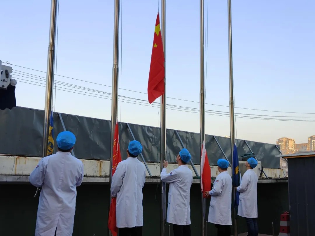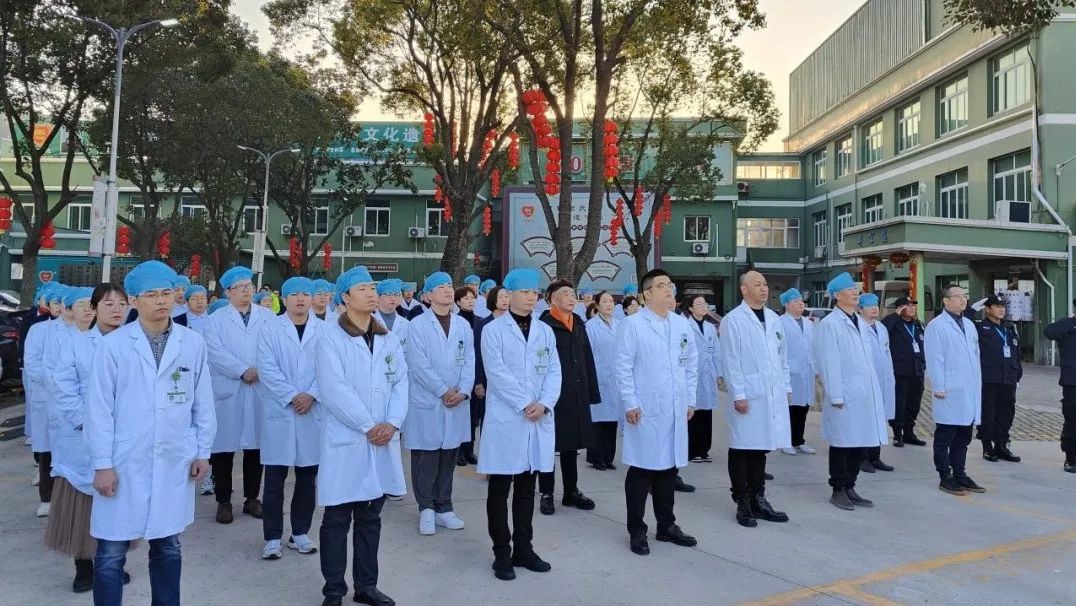 瑞雪紛飛辭舊歲,靈兔獻(xiàn)瑞報(bào)新春!1月28日上午7點(diǎn)20分,全體鶴傳人精神抖擻,滿(mǎn)懷激情,齊聚在醫(yī)院正門(mén)口舉行莊嚴(yán)、神圣的新年開(kāi)工升旗儀式,共同開(kāi)啟顧鶴傳醫(yī)院平安、和諧、祥順的新年新征程。