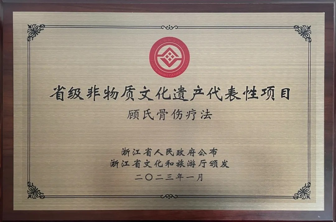 2023年1月,我院“顧氏骨傷療法”成功入選浙江省第六批省級非物質(zhì)文化遺產(chǎn)代表性項目名錄。