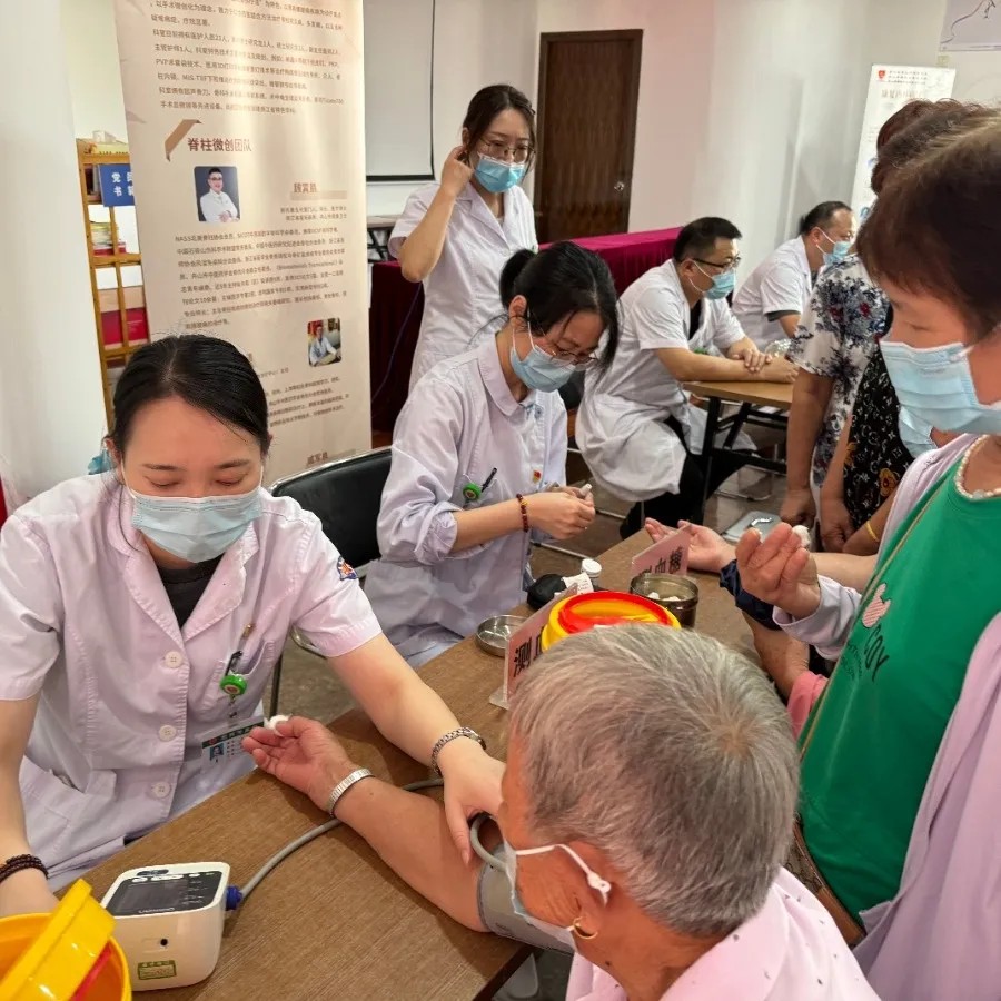 義診現(xiàn)場(chǎng)有頸肩腰腿痛科、骨傷科、內(nèi)科、消化內(nèi)科、普外科、康復(fù)科、針灸推拿科等各科專家,為社區(qū)百姓提供問(wèn)診及健康咨詢。黨員志愿者提供免費(fèi)測(cè)血壓、血糖等健康服務(wù)。將優(yōu)質(zhì)的醫(yī)療服務(wù)和關(guān)懷慰問(wèn)送到群眾的家門口,切實(shí)提升群眾的健康福祉和幸福感。