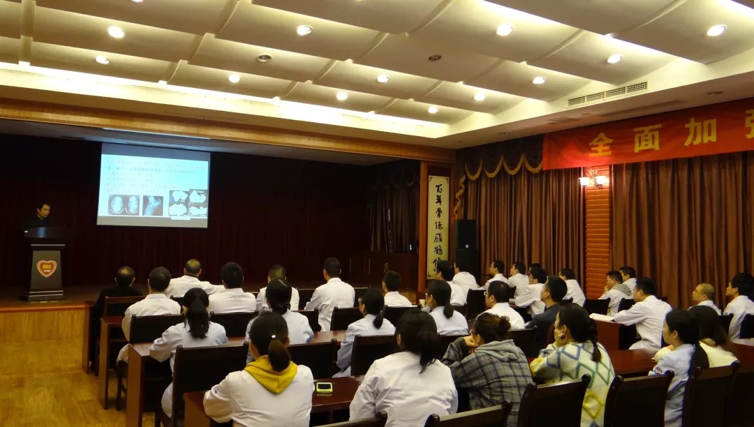 隨后,董謝平教授在我院四樓報(bào)告廳開(kāi)展了《復(fù)雜骨盆髖臼骨折的創(chuàng)新療法》、《自體骨髓輸注防治股骨頭壞死初探》等四個(gè)專(zhuān)題學(xué)術(shù)報(bào)告,全院60余名醫(yī)務(wù)人員聆聽(tīng)了講座。