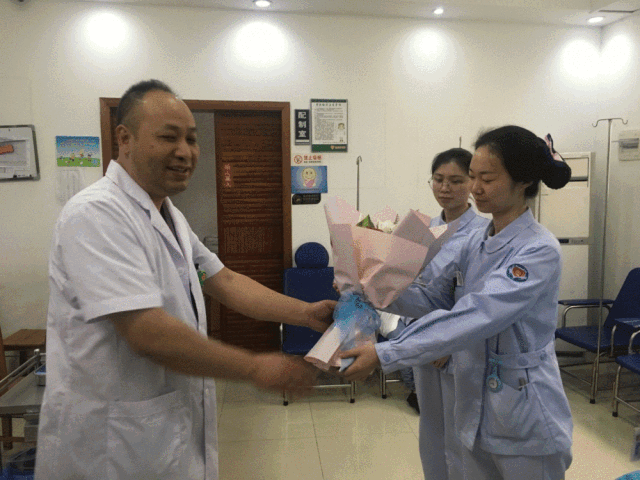 執(zhí)行院長祝康生給護士們贈送鮮花