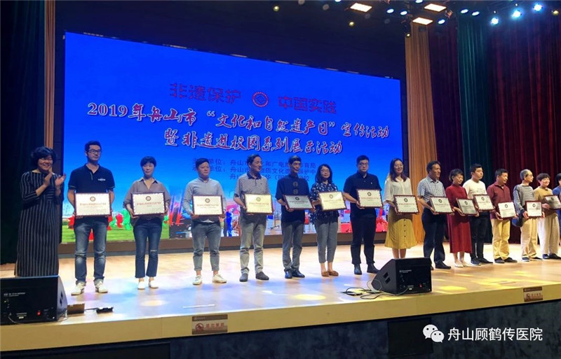 6月6日下午,第六批舟山市非物質(zhì)文化遺產(chǎn)授牌儀式暨非遺進校園系列展示活動在舟山綠城育華學(xué)校正式舉行。我院的“顧氏骨傷療法”被授予“第六批舟山市非物質(zhì)文化遺產(chǎn)名錄”,第五代傳人顧霄鵬代表我院出席了本次活動。