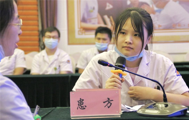 在第二項“理論考核與醫(yī)患溝通”中,選手們隨機抽取題目,圍繞具體病例問診技巧、術前溝通等多方面,通過真實情景的演繹,展示醫(yī)務人員在面對病人時如何用真心、耐心、愛心換取患者的安心、放心與舒心,展現了我院醫(yī)務人員的服務禮儀和專業(yè)水平。