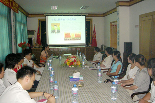為慶祝建黨八十七周年,讓廣大黨員及入黨積極分子更加深刻地理解黨的豐功偉績,更加堅定地熱愛黨、熱愛社會主義,7月1日我院黨支部組織開展了“迎七一·促發(fā)展”活動。在會上,全體人員認真學(xué)習了黨的十七大精神的十八個亮點,深刻體會到身為共產(chǎn)黨員,在思想上、行動上都應(yīng)保持先進性,起到帶頭作用,把十七大精神貫徹到實際工作中去,促進醫(yī)院和諧發(fā)展,為社會進步作出應(yīng)有的貢獻!
