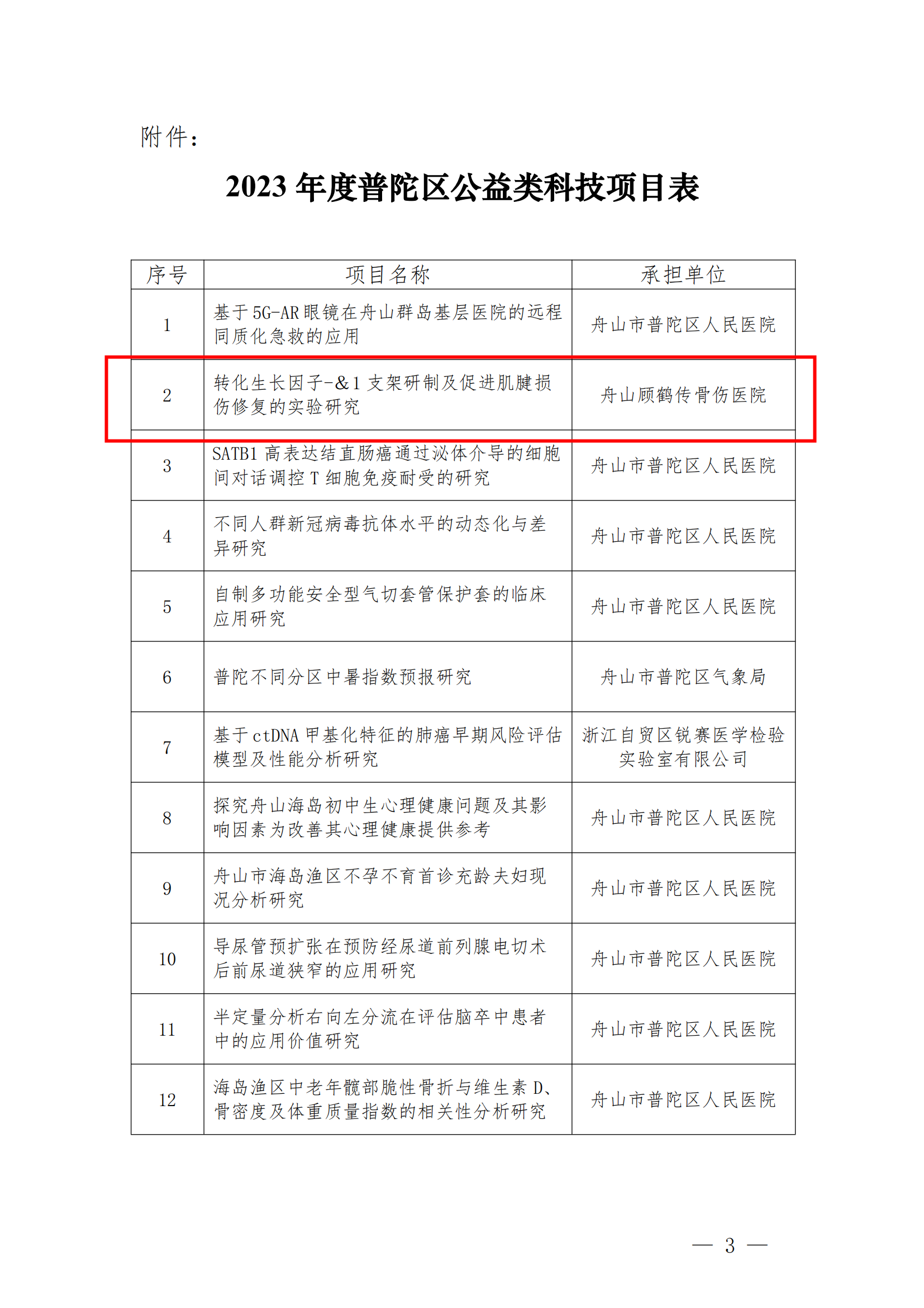 我院《轉(zhuǎn)化生長因子-β1支架研制及促進肌腱損傷修復(fù)的實驗研究》被納入2023年度普陀區(qū)公益類科技項目