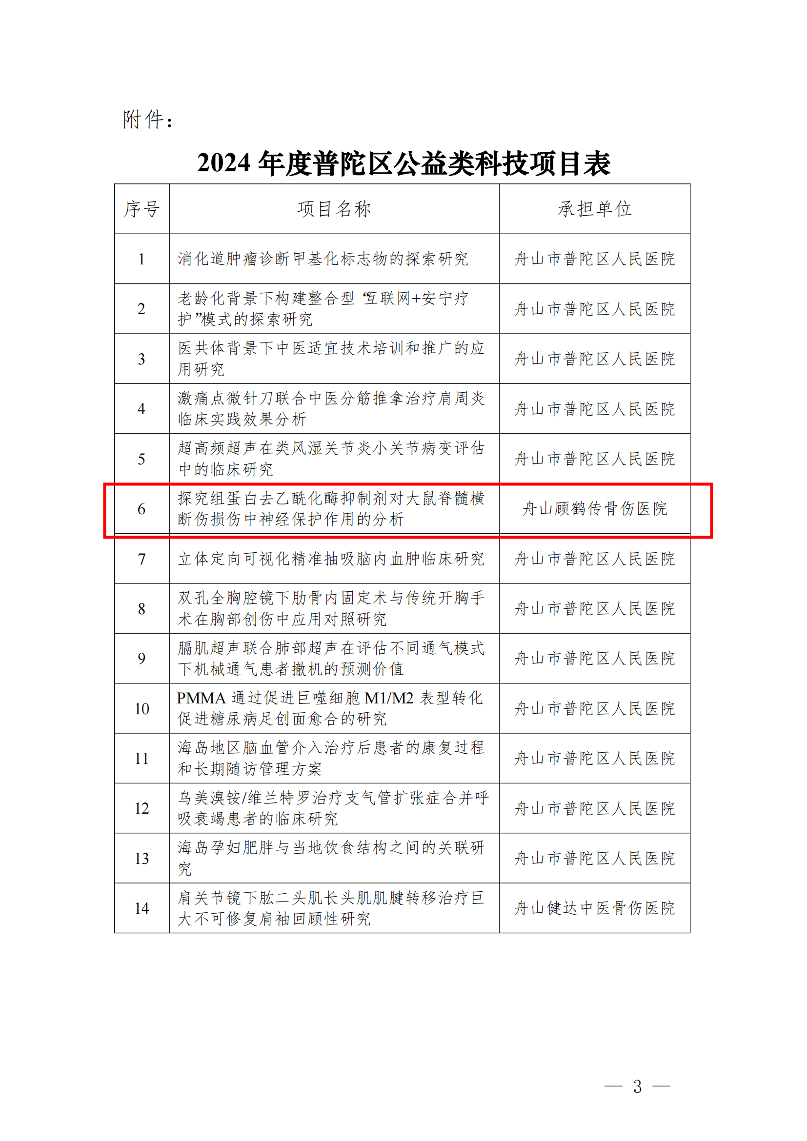 我院《探究組蛋白去乙?;敢种苿?duì)大鼠脊髓橫斷傷損傷中神經(jīng)保護(hù)作用的分析》被納入2024年度普陀區(qū)公益類科技項(xiàng)目